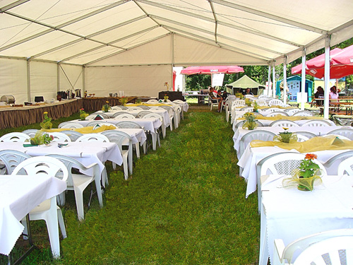 Dostarczamy również stoły i krzesła, obrusy i pokrowce na krzesła, ławostoły piwne i parasole.